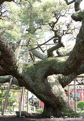 今は無き、香川県の「岡の松」とともに繁茂面積では甲乙付けがたいと言うことで、この地の出身でもある名横綱栃錦が行司役を勝って出て、それぞれを東西の横綱に推挙したとのエピソードがあるが、実際には「岡の松」の方が一枚上を行っていたであろうか。樹下には、その記念碑が誇らしげに現在も置かれている。